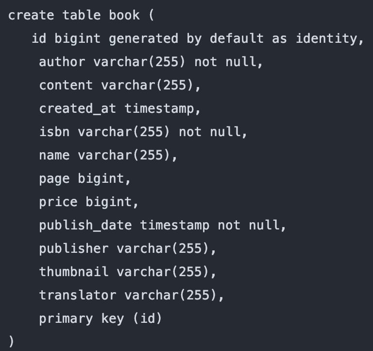 먼저, Book이라는 클래스를 사용한다. (실제 프로젝트에서 쓰는 클래스에서 필드만 줄였다)