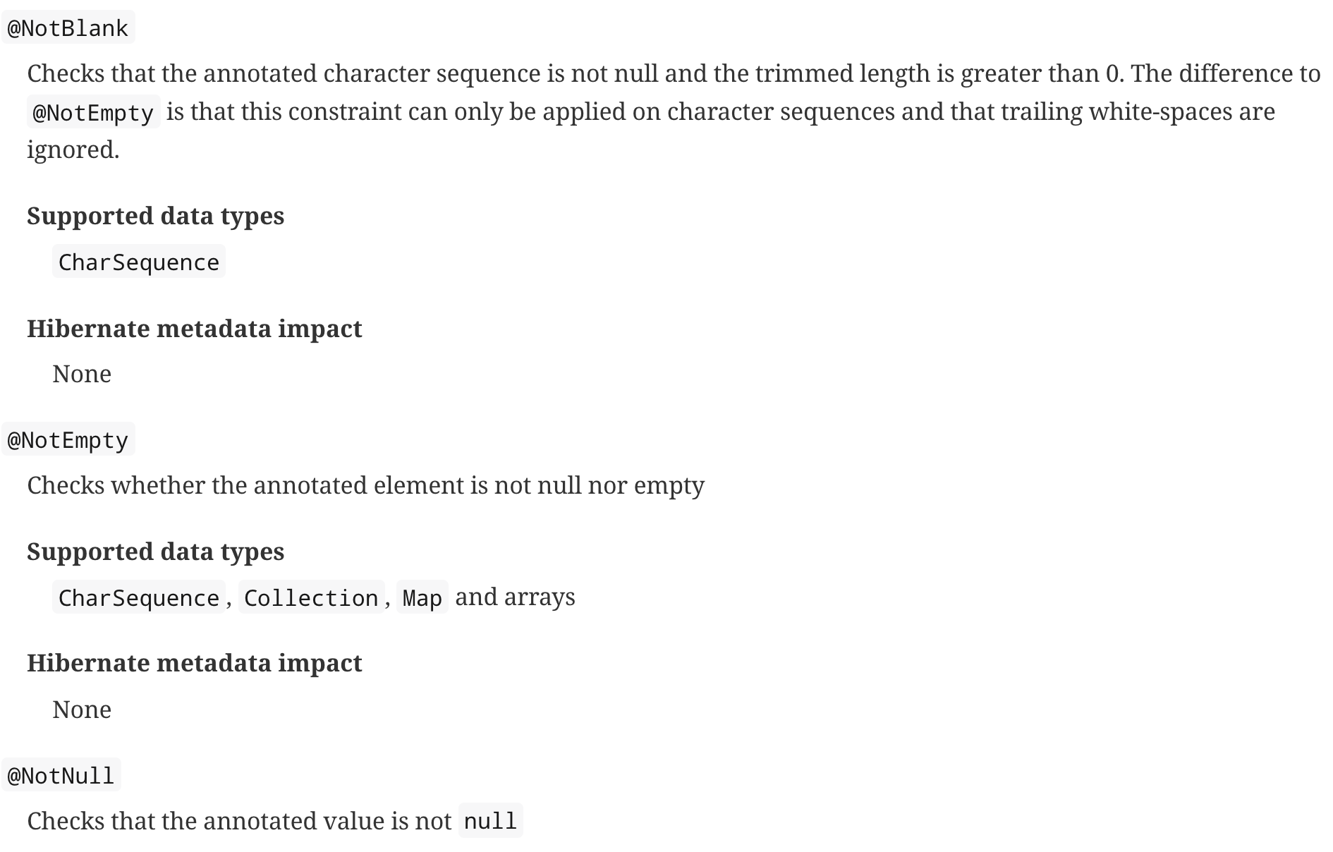 다만, 이것은 설득력이 크지 않다. 그래서 이유를 찾기 위해, hibernate validator 페이지를 확인했다.
