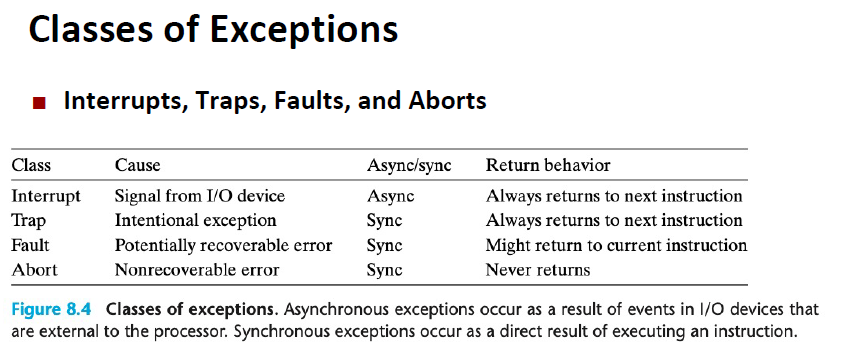 Exceptions의 정의는 다음과 같다: "Change in control flow in response to a system event"