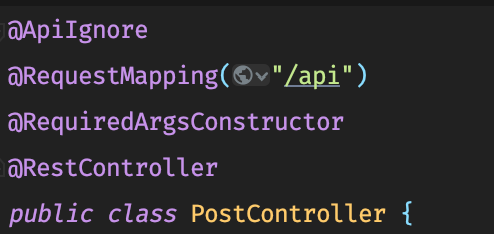 만약 어떤 API를 숨기고 싶다면, 해당 컨트롤러나 메소드에 @ApiIgnore 어노테이션을 추가해주면 된다!