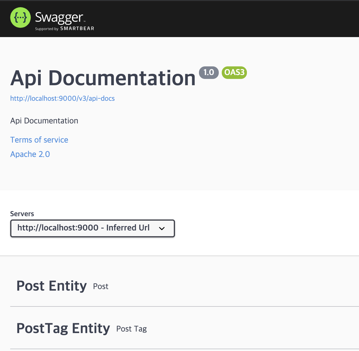 위에서는 title, version, description 설정을 등록했고, contact에서 나의 이름, url, mail 정보를 등록했다.
